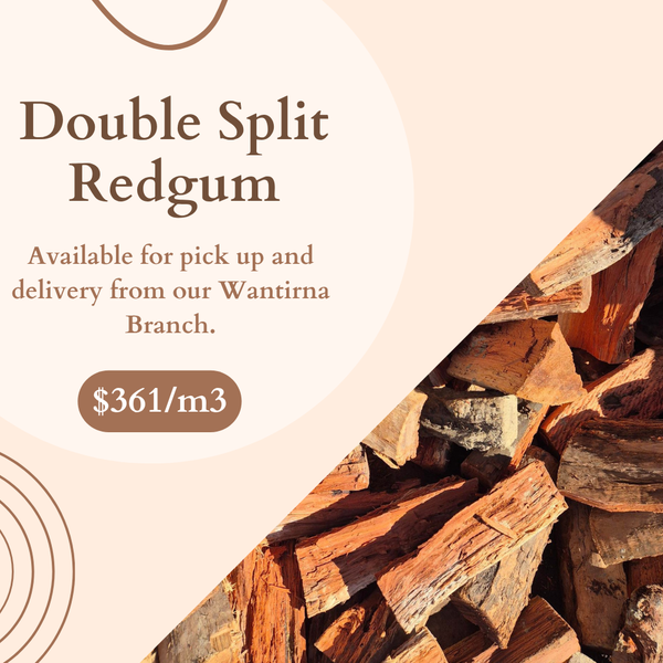 Get the best Double Split Redgum for your fire. This product is exclusively available for pickup or delivery through our Wantirna Branch only.